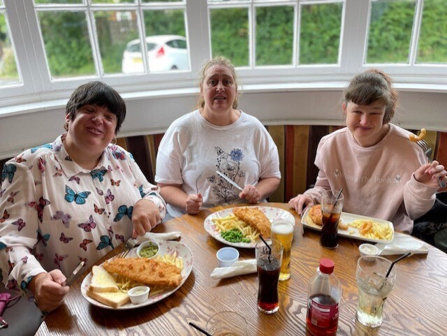 Many of our clients enjoy a good pub lunch. We often walk to various venues such as The Miners Peg in Skelmersdale. The clients love to go there as they always bump in to people they know. It is also nice to do in smaller groups such as the photo shown here. This enables the clients to really build their individual friendships. (The girls usually like to walk over to the shops afterwards).